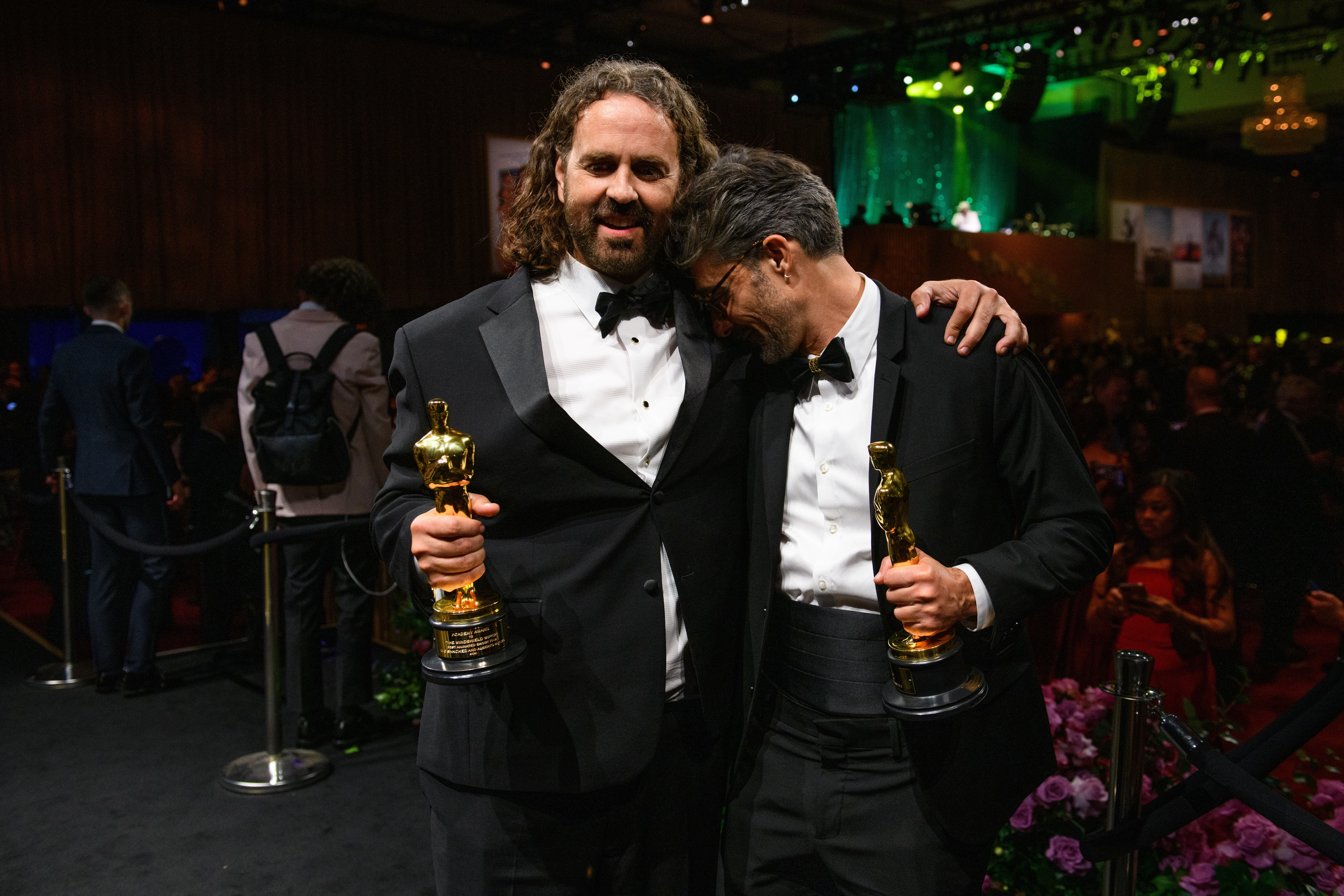 Filename: 94_GB_0093.jpg Size: 7,678w by 5,119h. 9,627,110 bytes Date: 03/27/2022 Download Hi Rez Preview Leo Sanchez and Alberto Mielgo with the Oscar® for Animated Short Film during the live ABC telecast of the 94th Oscars® at the Dolby Theatre at Ovation Hollywood in Los Angeles, CA, on Sunday, March 27, 2022. keywords: 94th Oscars, Academy Awards credit: Josh Sudock / A.M.P.A.S.