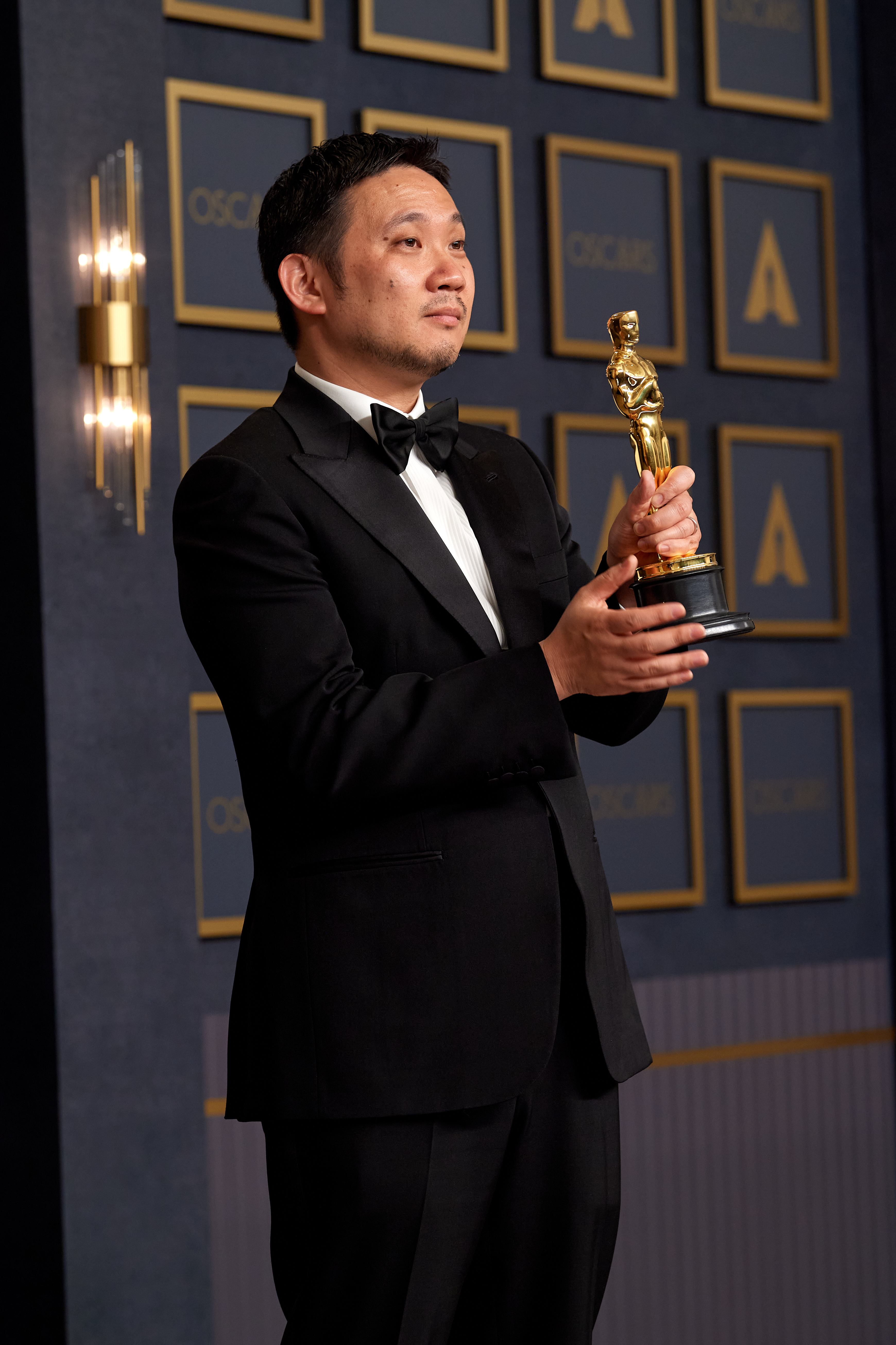 Filename: 94_PR_0305.jpg Size: 3,479w by 5,219h. 5,618,283 bytes Date: 03/27/2022 Download Hi Rez Preview Ryusuke Hamaguchi poses backstage with the Oscar® for International Feature during the live ABC telecast of the 94th Oscars® at the Dolby Theatre at Ovation Hollywood in Los Angeles, CA, on Sunday, March 27, 2022. keywords: 94th Oscars, Academy Awards credit: Michael Yada / A.M.P.A.S.