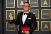 Filename: 94_PR_0155.jpg Size: 5,333w by 3,555h. 6,053,557 bytes Date: 03/25/2022 Download Hi Rez Preview Greig Fraser poses backstage with the Oscar® for Cinematography during the live ABC telecast of the 94th Oscars® at the Dolby Theatre at Ovation Hollywood in Los Angeles, CA, on Sunday, March 27, 2022. keywords: 94th Oscars, Academy Awards credit: Michael Baker / A.M.P.A.S.