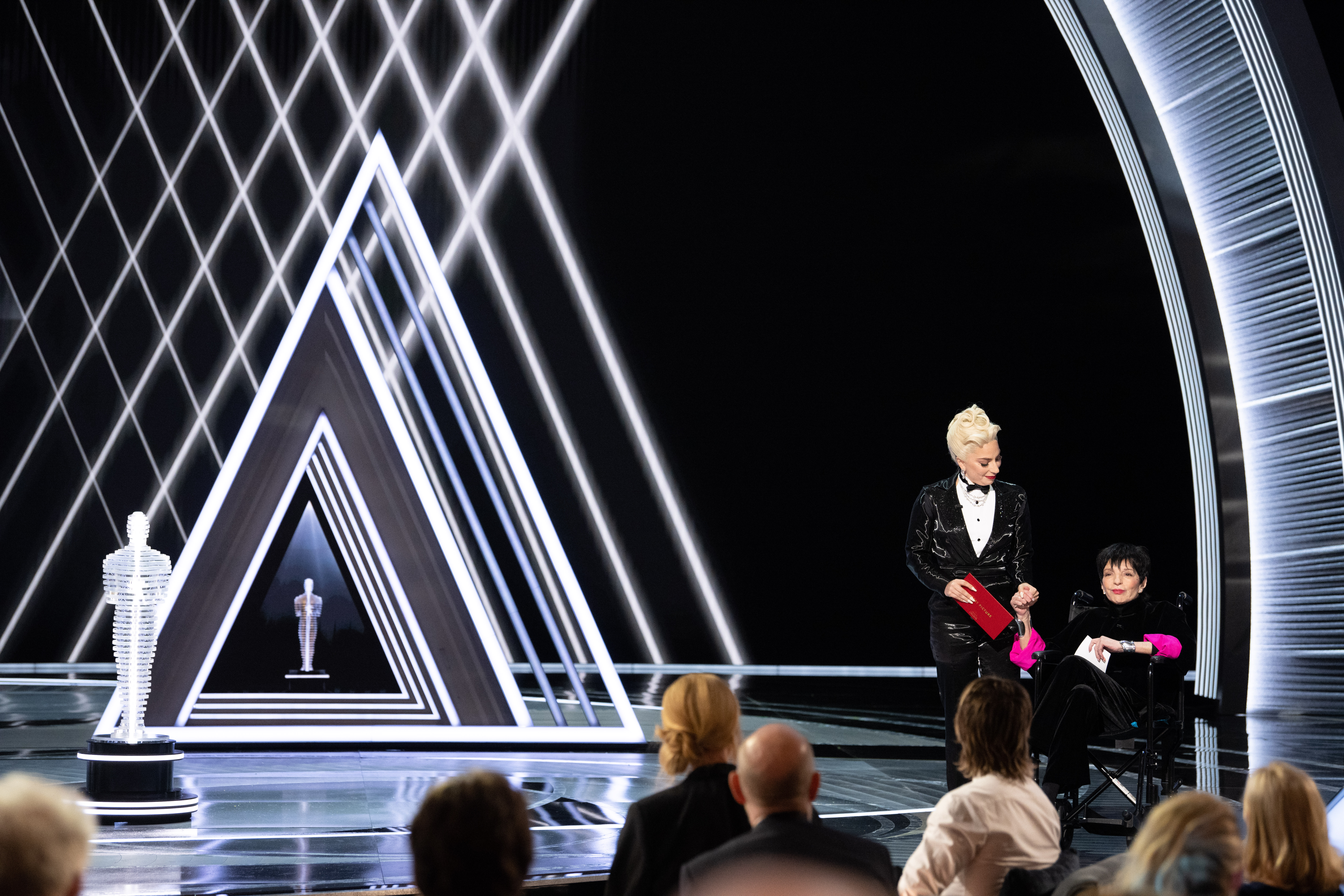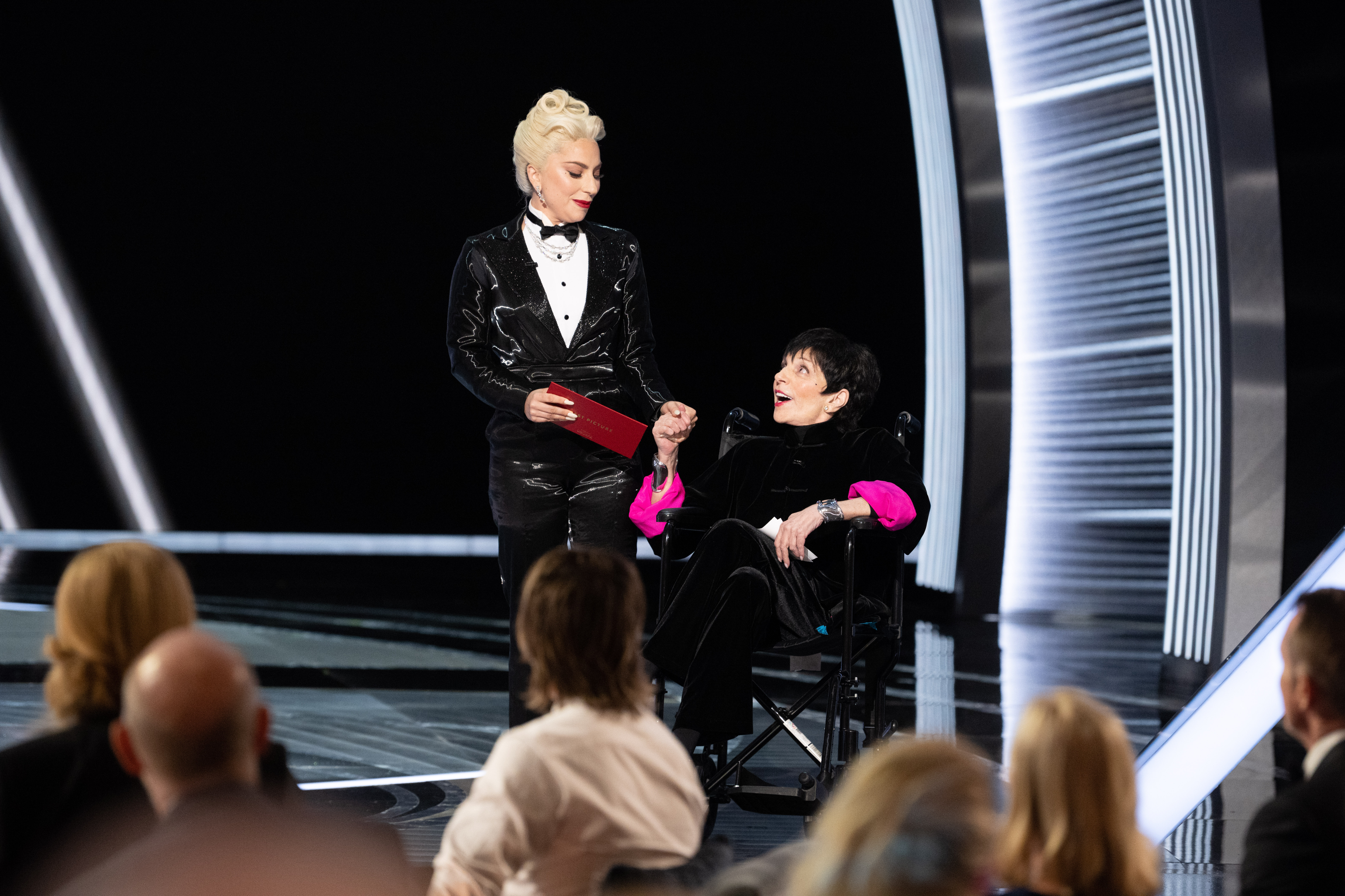 Filename: 94_TC_0829.jpg Size: 8,256w by 5,504h. 9,958,285 bytes Date: 03/25/2022 Download Hi Rez Preview Lady Gaga and Liza Minnelli present the Oscar® for Best Picture during the live ABC telecast of the 94th Oscars® at the Dolby Theatre at Ovation Hollywood in Los Angeles, CA, on Sunday, March 27, 2022. keywords: 94th Oscars, Academy Awards credit: Blaine Ohigashi / A.M.P.A.S.