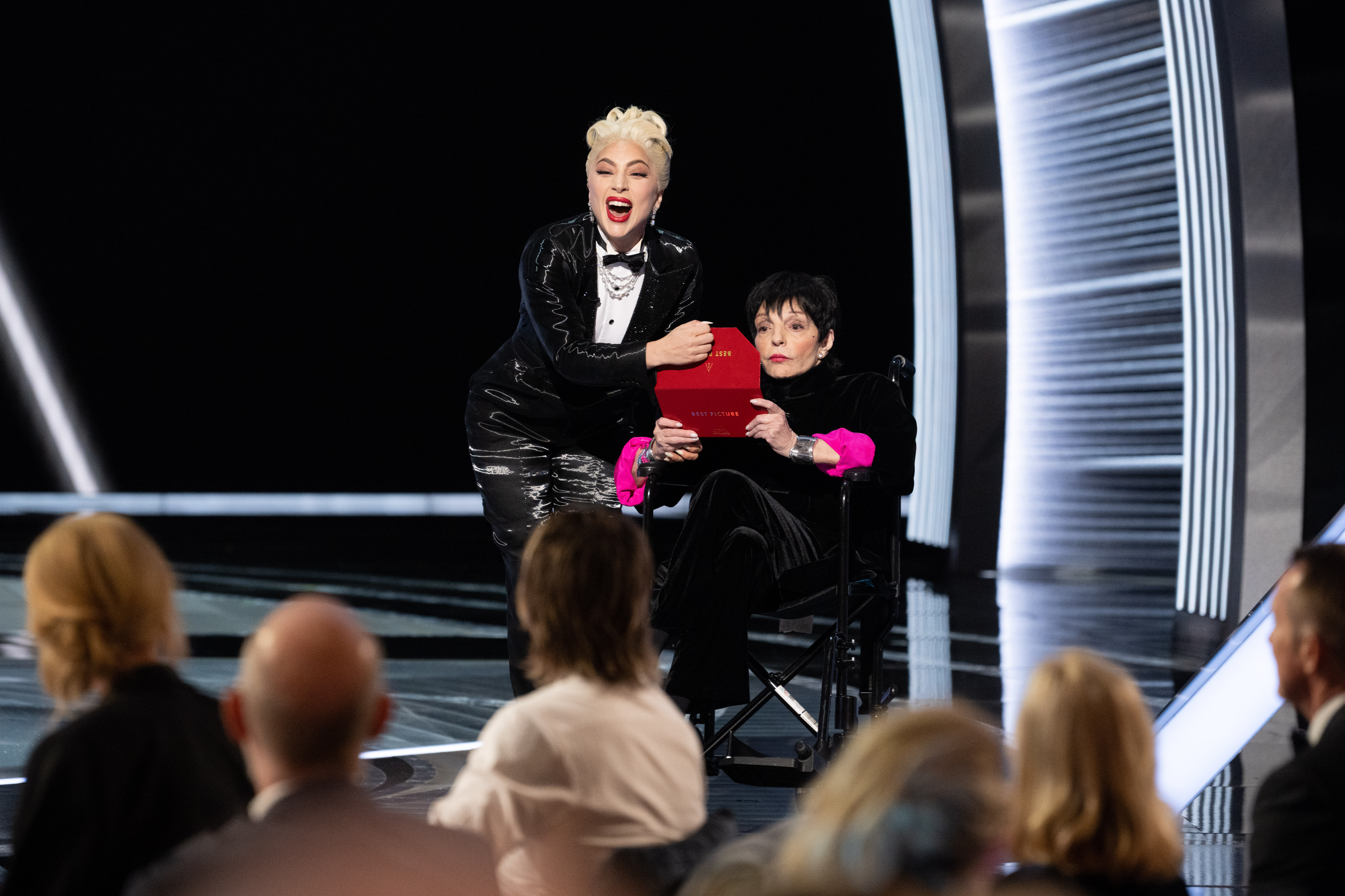 Filename: 94_TC_0830.jpg Size: 7,620w by 5,080h. 7,666,009 bytes Date: 03/25/2022 Download Hi Rez Preview Lady Gaga and Liza Minnelli present the Oscar® for Best Picture during the live ABC telecast of the 94th Oscars® at the Dolby Theatre at Ovation Hollywood in Los Angeles, CA, on Sunday, March 27, 2022. keywords: 94th Oscars, Academy Awards credit: Blaine Ohigashi / A.M.P.A.S.