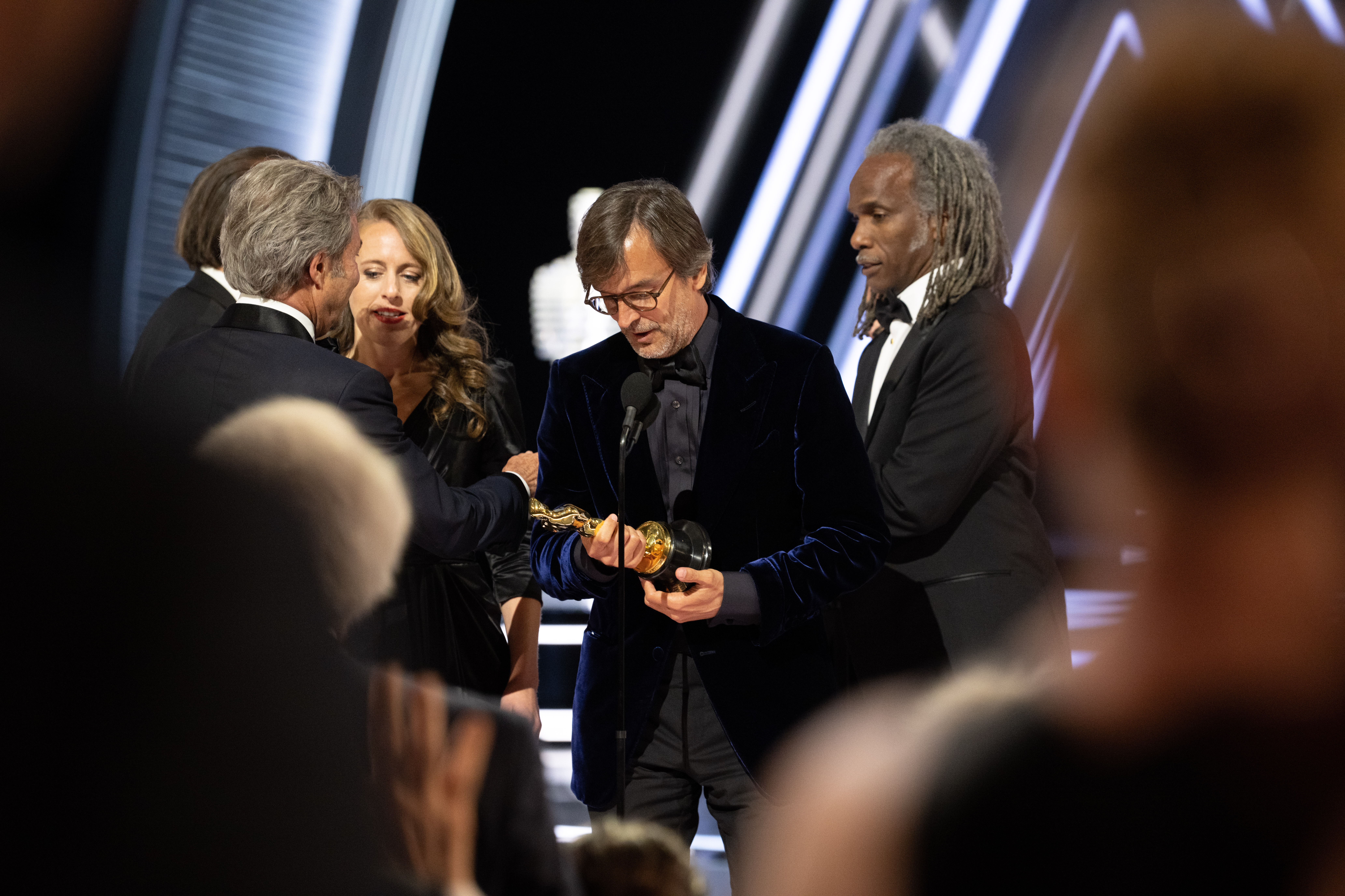 Filename: 94_TC_0834.jpg Size: 8,256w by 5,504h. 9,974,490 bytes Date: 03/25/2022 Download Hi Rez Preview Patrick Wachsberger and Philippe Rousselet accept the Oscar® for Best Picture for "CODA" during the live ABC telecast of the 94th Oscars® at the Dolby Theatre at Ovation Hollywood in Los Angeles, CA, on Sunday, March 27, 2022. keywords: 94th Oscars, Academy Awards credit: Blaine Ohigashi / A.M.P.A.S.
