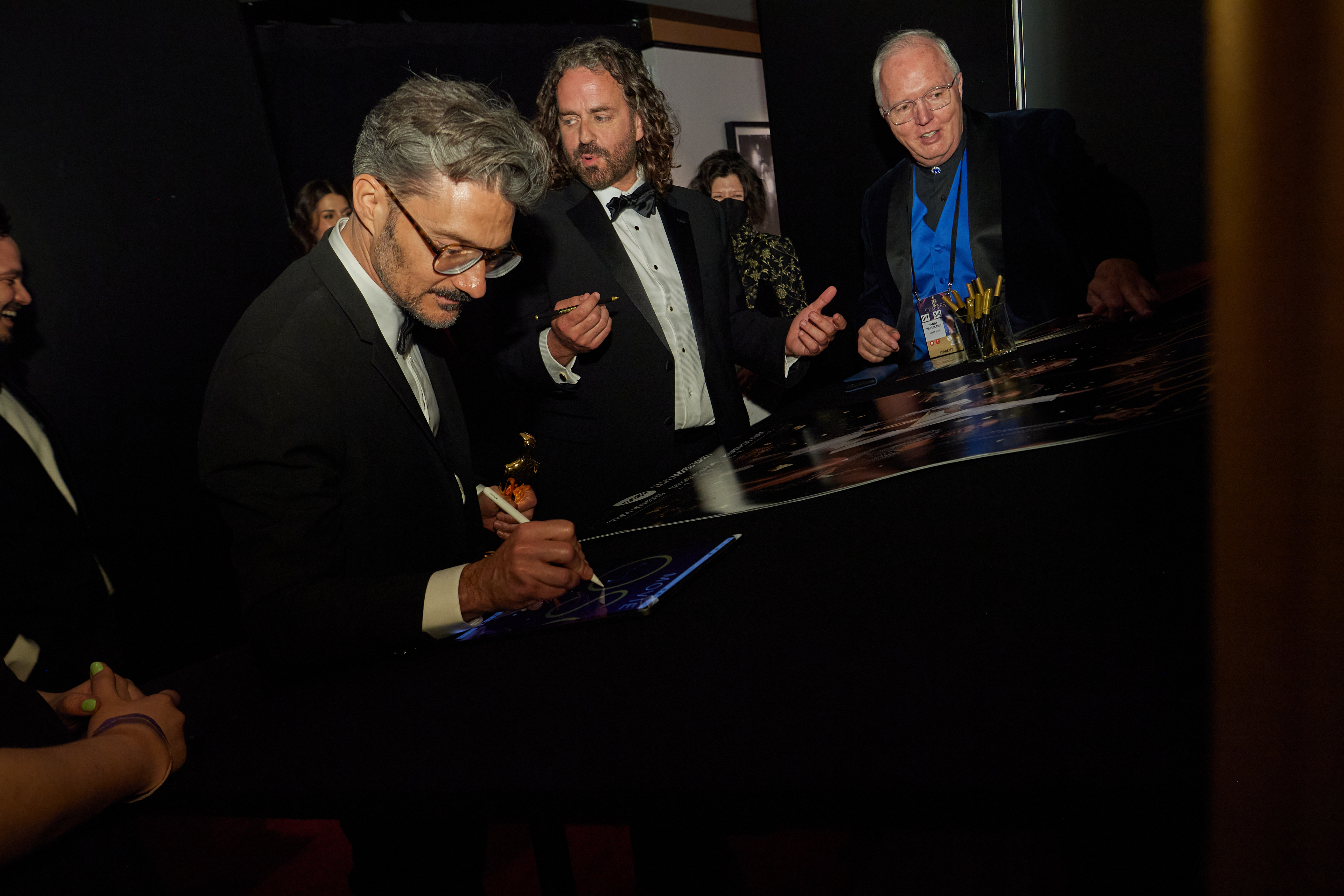Filename: DUP_94_BS_0035.jpg Size: 5,568w by 3,712h. 6,356,785 bytes Date: 03/25/2022 Download Hi Rez Preview Alberto Mielgo and Leo Sanchez and backstage with the Oscar® for Animated Short Film during the live ABC telecast of the 94th Oscars® at the Dolby Theatre at Ovation Hollywood in Los Angeles, CA, on Sunday, March 27, 2022. keywords: 94th Oscars, Academy Awards credit: Robert Gladden / A.M.P.A.S.