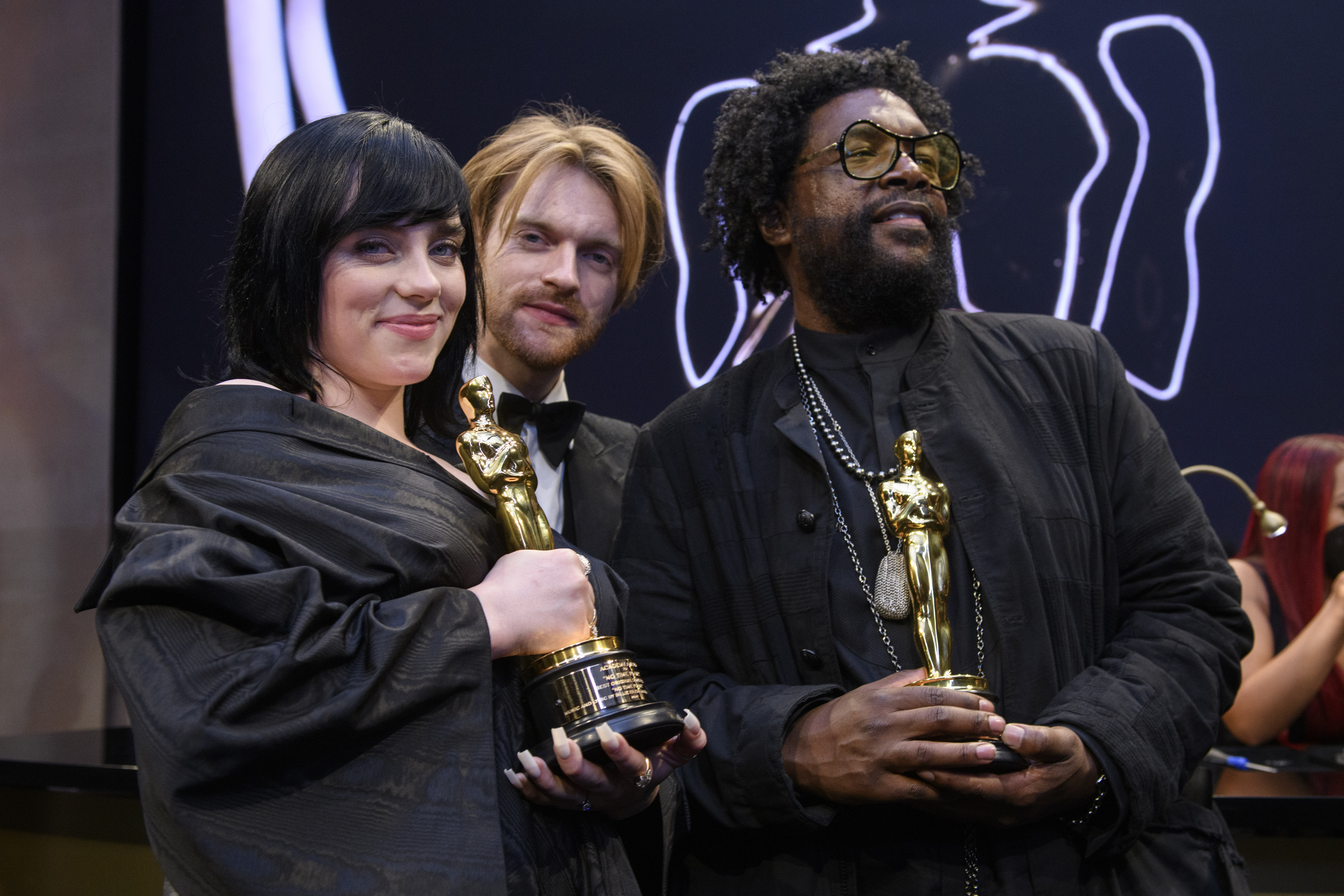 Size: 7,131w by 4,754h. 7,098,949 bytes Date: 03/27/2022 Download Hi Rez Preview Billie Eilish, Finneas O'Connell and Ahmir "Questlove" Thompson attend the Governors Ball following the live ABC telecast of the 94th Oscars® at the Dolby Theatre at Ovation Hollywood in Los Angeles, CA, on Sunday, March 27, 2022. keywords: 94th Oscars, Academy Awards credit: Josh Sudock / A.M.P.A.S.